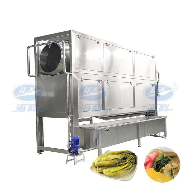 該產(chǎn)品適用于醬腌菜根莖類鹽漬后原料的清洗工藝,采用合理的筋肋滾筒結構,配有上噴淋機構,并設置水循環(huán)系統(tǒng),節(jié)約水資源,改善生產(chǎn)環(huán)境,降低勞動強度,是根莖類醬腌菜原料清洗的理想裝備。